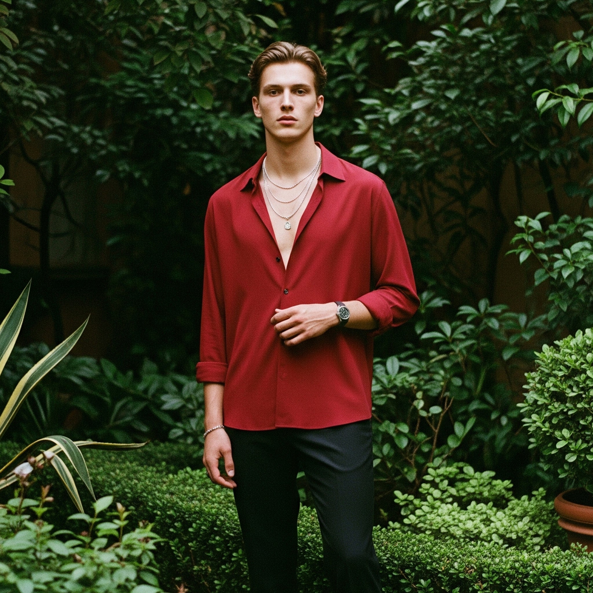 Erkek Bol Kesim Desenli Bej Keten Gömlek